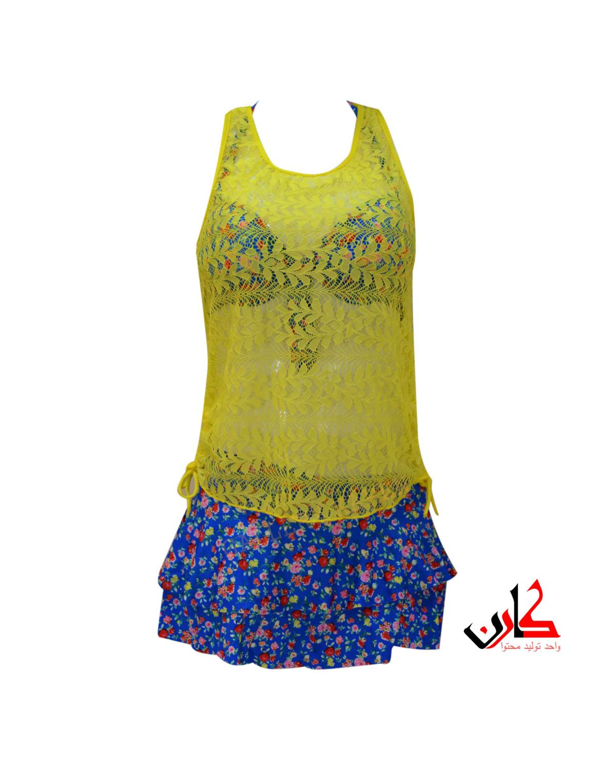 رنگ بندی : رنگ بیکینی زیر : آبی گلدار و روی گیپور زرد